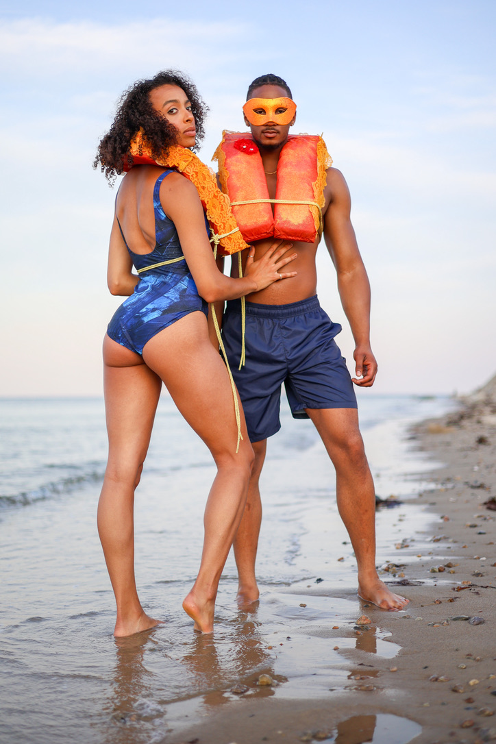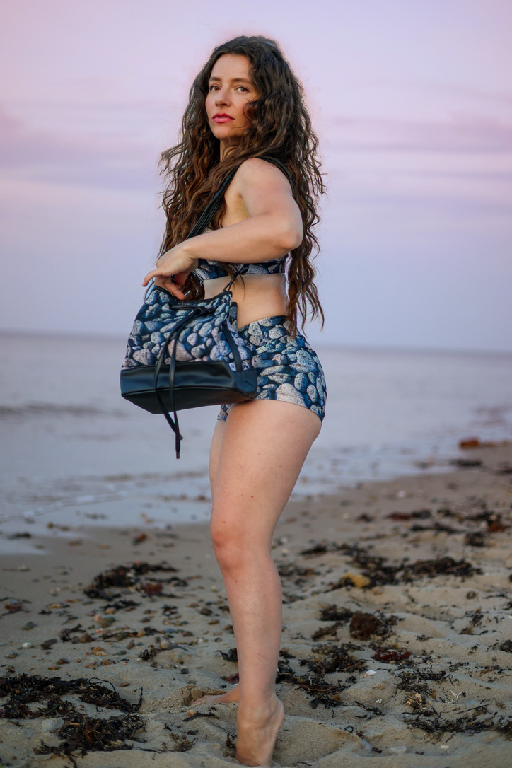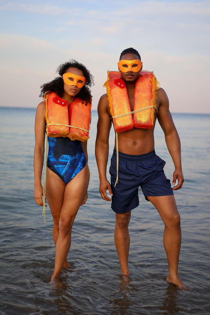 Set against the quiet rhythm of the Cape Cod shoreline, this series introduces the iñi Elements collection in its most natural state – worn, moved in, and carried by the sea air. The pieces are presented with ease and clarity, where texture, color, and form meet the softness of light on water. Interwoven throughout are subtle gestures from the Mya Royal atelier: a hint of theater in Venetian-inspired masks, an unexpected glint in reimagined life vests, lending a note of narrative and transformation. The result is a balance between grounded coastal simplicity and imaginative expression, where utility, beauty, and story coexist.